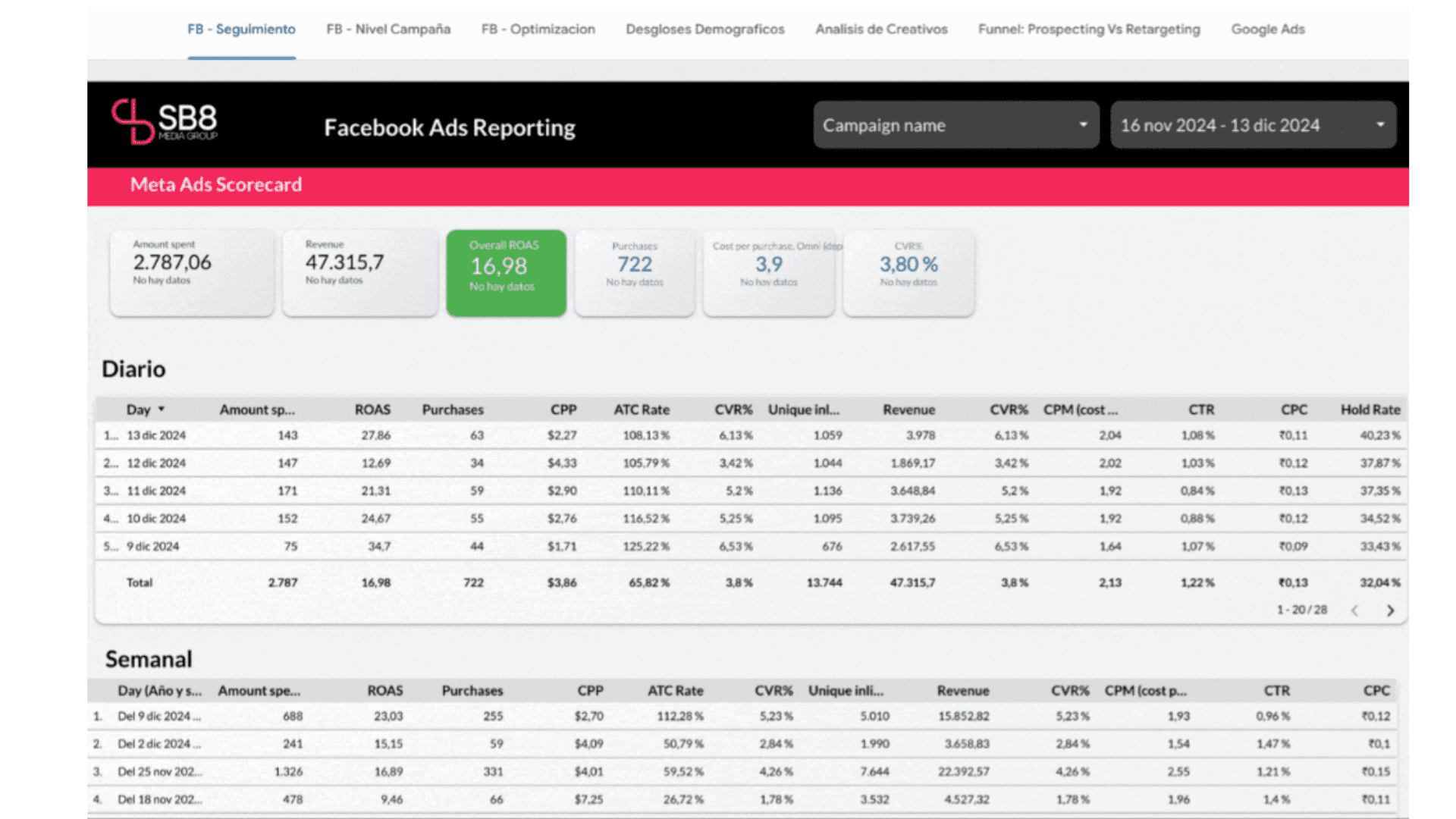 Dashboard para conectar Google, Meta, y medir todos tus canales.