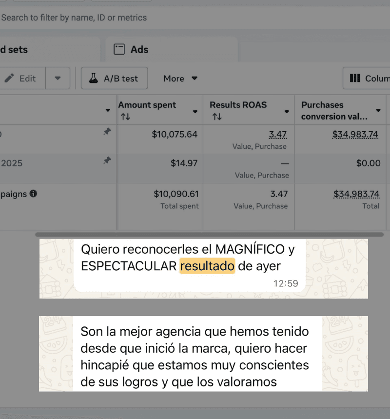 Cada semana analizamos el rendimiento anuncio por anuncio, detectamos patrones, y lanzamos nuevas tandas que aprenden de la anterior.